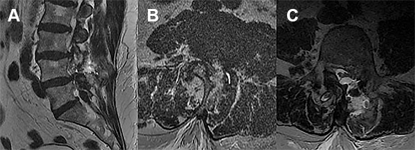 Por imágenes de resonancia magnética se evidenciaba estenosis de canal lumbar, discopatía degenerativa multinivel y espondilolistesis L4/L5.