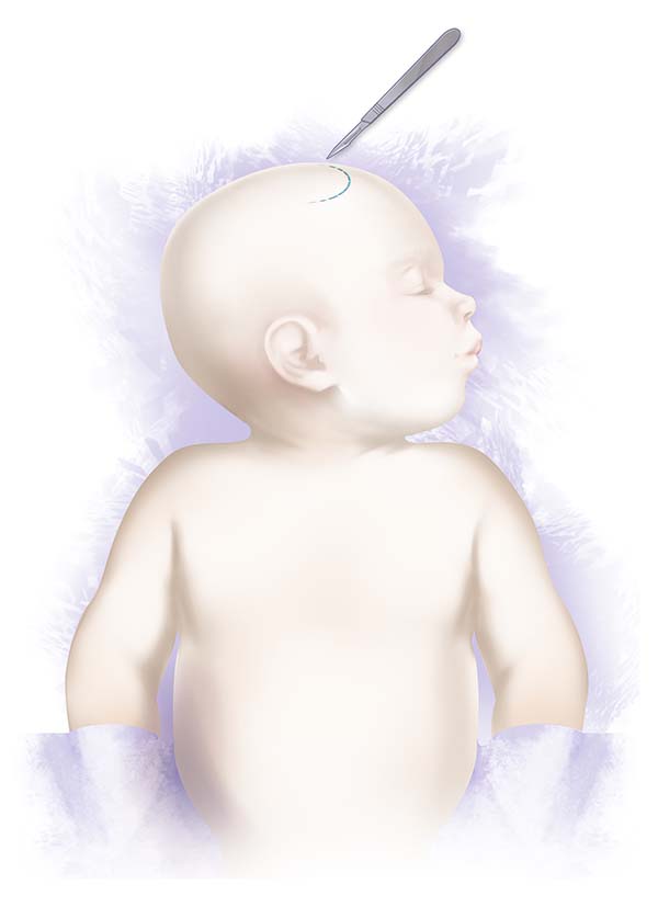 Incisión arciforme sobre el cuero cabelludo.