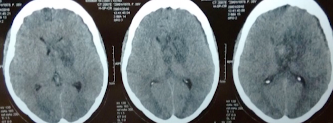 Paciente de sexo femenino de 37 años sin antecedentes referidos, derivada de otro nosocomio con diagnóstico de lesión ocupante de espacio. Refirió cuadro de cefalea de 1 año de evolución con náuseas, vómitos e inestabilidad de la marcha de 1 semana de duración. Al examen físico se encontraba vigil, GCS 15/15, pupilas intermedias reactivas, bradipsíquica, leve hemiparesia braquiocrural derecha, con hiperreflexia braquial derecha y Hoffman positivo ipsilateral. La tomografía computada y resonancia magnética de encéfalo revelaron una lesión ocupante de espacio a nivel de ganglios de la base. El proceso tumoral se encontraba a nivel talámico e invadía III ventrículo, ventrículo lateral izquierdo (con ausencia de hemoventrículo), cuerpo calloso y cápsula interna. El mismo se evidenciaba como una masa lobulada y heterogénea (Figura 1).