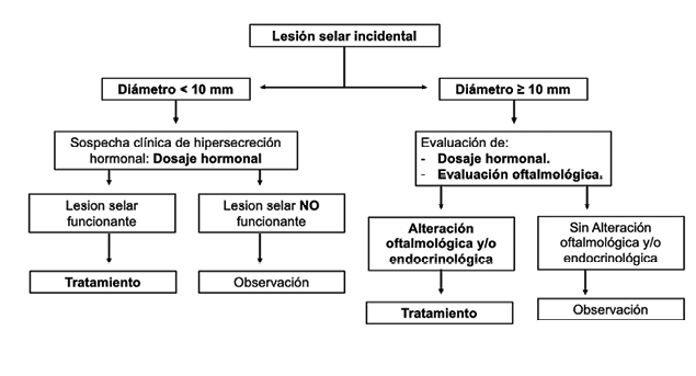 Figura 2. Algoritmo terapéutico en lesiones selares incidentales.