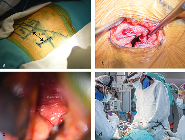 En el lado izquierdo de la columna lumbosacra existe un claro corredor anatómico, de aproximadamente 18 mm, entre la aorta y el psoas que se extiende desde L2 hasta L5. Este espacio puede ser utilizado para abordar el disco intervertebral y realizar una fusión intersomática con la posibilidad de dejar los grandes vasos en su situación nativa.