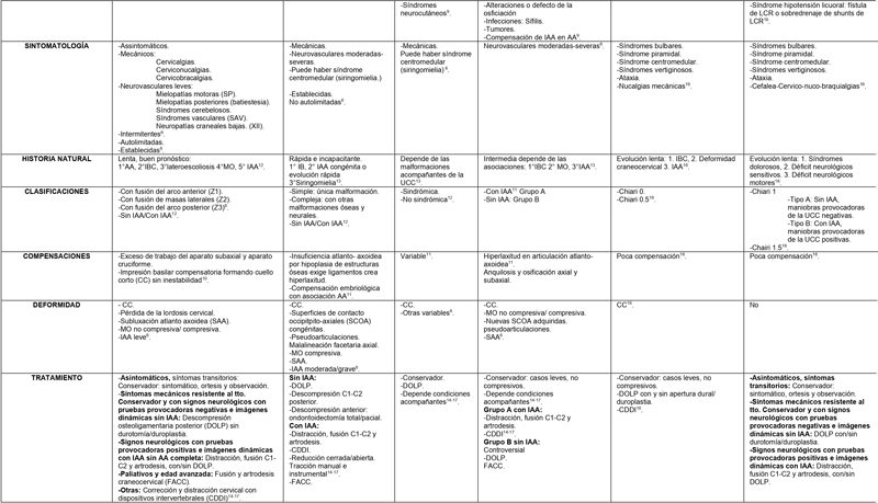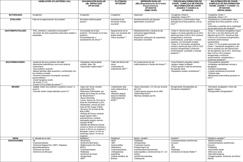 Tabla N°1. Diferencias entre AA, IB, Platibasia, IBC, y variantes de Malformación de Chiari.