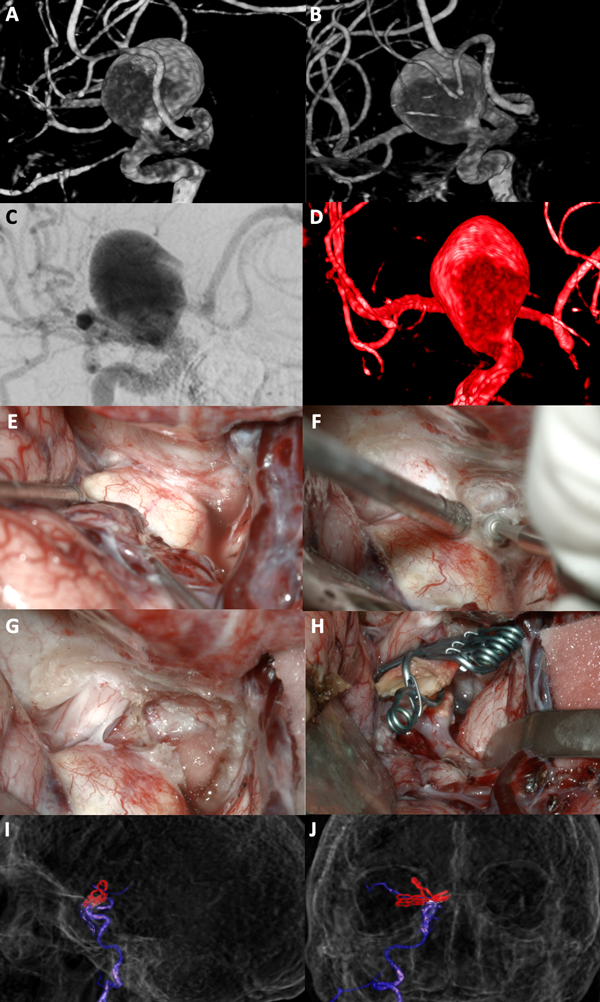 El clipado quirúrgico para los A.co sigue siendo un desafío ya que estas lesiones ocupan una pequeña región llena de estructuras neurovasculares críticas, entre ellas la ACI, arterias perforantes de la vía visual e hipófisis, los nervios ópticos, el seno cavernoso y el nervio oculomotor entre otras (Figura 1).