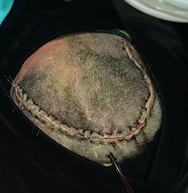 Figura 5: Cierre de piel y drenaje hemosuctor subgaleal.