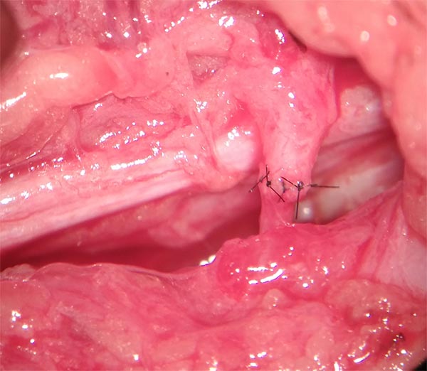 Mediante maniobras romas delicadas se realiza la disección de dicho nervio, permitiendo así repararlo mediante una banda elástica para los futuros pasos quirúrgicos.