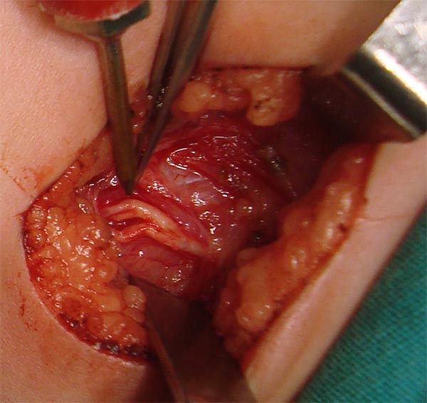 Figura 12: Identificación de nervios durante cirugía de Oberlin en paciente lactante (brazo izquierdo).