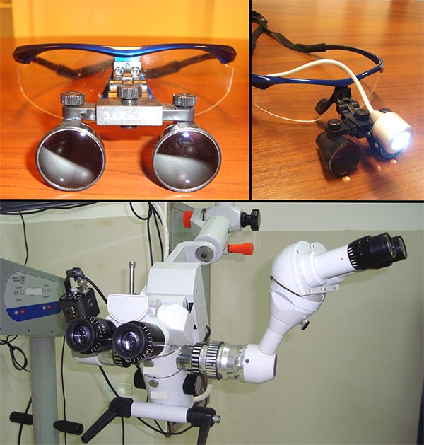 Figura 14: Medios de magnificación. Arriba: lupas utilizadas para el abordaje. Abajo: microscopio utilizado para la epineurotomía y microsutura.