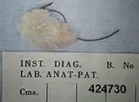 Figura 2: Muestra macroscópica del quiste neuroentérico intradural/extramedular, localizado a nivel cervical, extraído completamente mediante técnica de abordaje posterior.