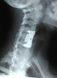 Figura 1: Radiografía de columna cervical anteroposterior, donde se evidencia laminectomía en C5-C6 con abordaje posterior.