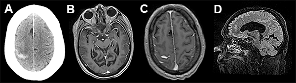 En el presente trabajo, los autores reportan un evento hemorrágico cerebral como complicación de una fistula de líquido cefalorraquídeo (LCR) asociada a una cirugía espinal lumbar mini invasiva. Dicho evento se desencadenó 72 hs luego de la reparación de la fístula de LCR, presentándose como una hemorragia subaracnoidea de la convexidad cerebral. Esta complicación ha sido descrita por numerosos grupos,1-5 siendo la localización mas frecuente el cerebelo. Si bien las imágenes de tomografía y resonancia magnética nuclear evidencian la presencia de hemorragia subaracnoidea en el surco central derecho, llama la atención la asimetría de surcos con hipodensidad en el área premotora derecha, similar a los hallazgos asociados con una trombosis venosa. Más aún, considerando que el paciente tiene antecedentes de trombosis venosa profunda e ingresa a las 72 horas por trastornos del sensorio (difícilmente explicables sólo por una hemorragia subaracnoidea de la convexidad), no podemos descartar con las imágenes brindadas la presencia de trombosis venosa, complicación también descripta como consecuencia de una perdida de LCR.6-9 Si bien ambas complicaciones son de muy baja ocurrencia, es importante reconocer su existencia a la hora de evaluar un postoperatorio de cirugía espinal complicado con fistula de LCR en pacientes añosos.