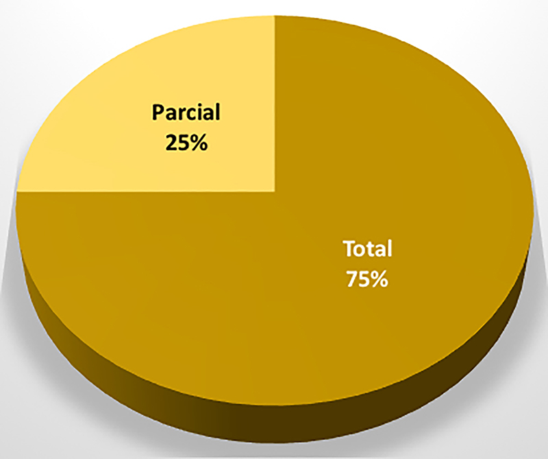 En el grupo de pacientes en los que se objetivó déficit visual preoperatorio (n=88), se evidenció mejoría visual postoperatoria en un 94% de los casos (n=83) (graf. 2). De los 5 casos sin mejoría, 4 permanecieron estables y 1 con deterioro.