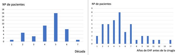 Figura 4. La mayoría de los pacientes estudiados estaban en la 5ª década de la vida y el tiempo de evolución de los síntomas fueron 5,4 años.