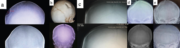 Se logró una reducción satisfactoria de la fractura deprimida en “ping pong” en todos los casos (Fig. 4). Se realizó una ecografía transfontanelar post procedimiento, la cual no evidenció lesiones agregadas. La evaluación neurológica fue normal y los pacientes presentaron buena tolerancia oral luego del procedimiento. Al día siguiente se realizó una radiografía de cráneo, la cual evidenció la reducción satisfactoria de la fractura en los 5 pacientes (Fig. 5). Los pacientes fueron dados de alta por la especialidad 24 horas luego del procedimiento con seguimiento ambulatorio.