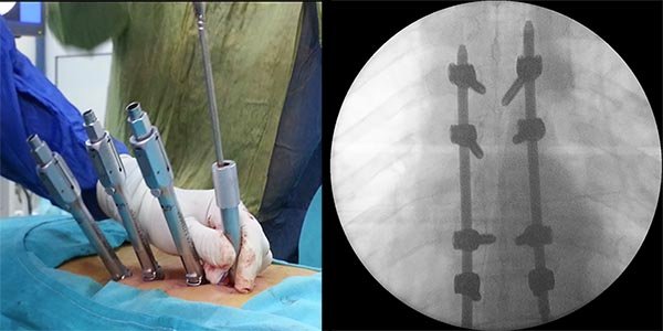 Este tipo de cirugía permite colocar tornillos transpediculares en forma percutánea, y unir los mismos mediante barras de titanio. Esto cumple la función de “tutor interno”, que estabiliza en forma inmediata la lesión, permitiendo la movilización, aliviando el dolor y logrando un ambiente propicio para la consolidación de las fracturas.