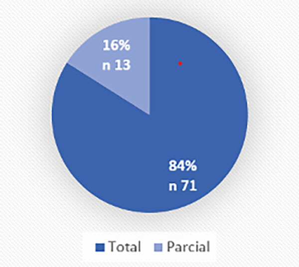 | Auditivo | Anacusia | 65,48% (n:55) | 86,90% (n:73) |