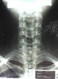 Figura 1: Radiografía de columna cervical anteroposterior, donde se evidencia laminectomía en C5-C6 con abordaje posterior.